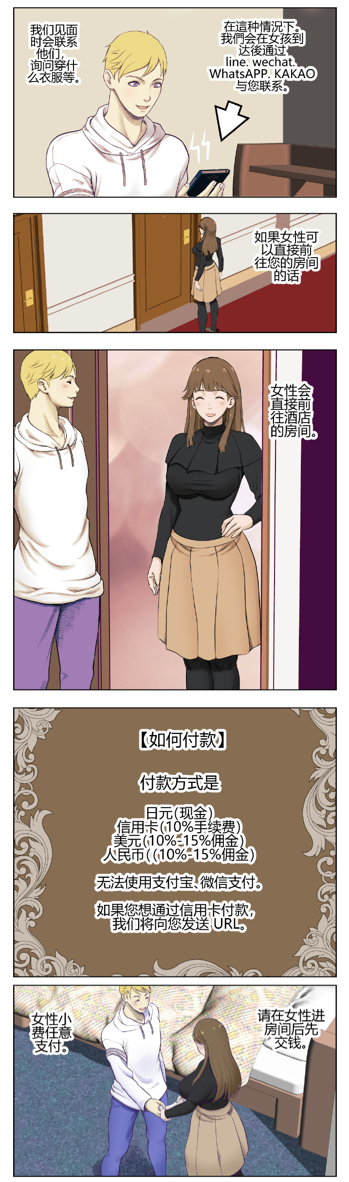 基本上我们的女孩会去你下住的酒店(城市酒店或者商务酒店)。
